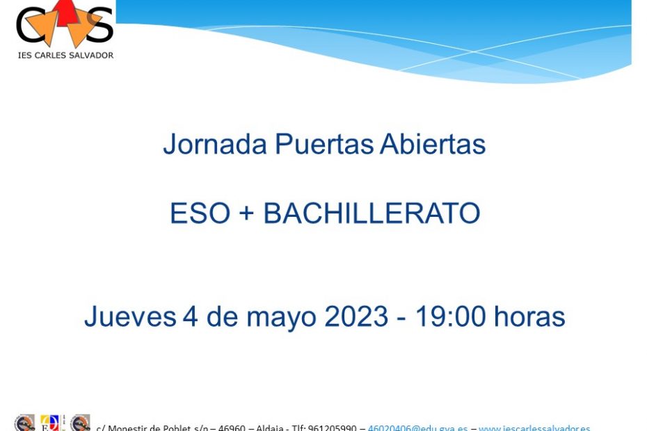 Jornada de puertas abiertas ESO+BACH – 4 de mayo 19:00 horas