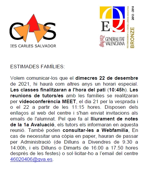 L’alumna Paula Montero Gil de 2n d’ESO B ha guanyat el concurs de targetes de Nadal de l’IES Carles Salvador en l’edició 2021. Aquest matí hem fet entrega del premi a la guanyadora. Enhorabona a totes i tots els participants… Llegiu més »Premi targetes de nadal