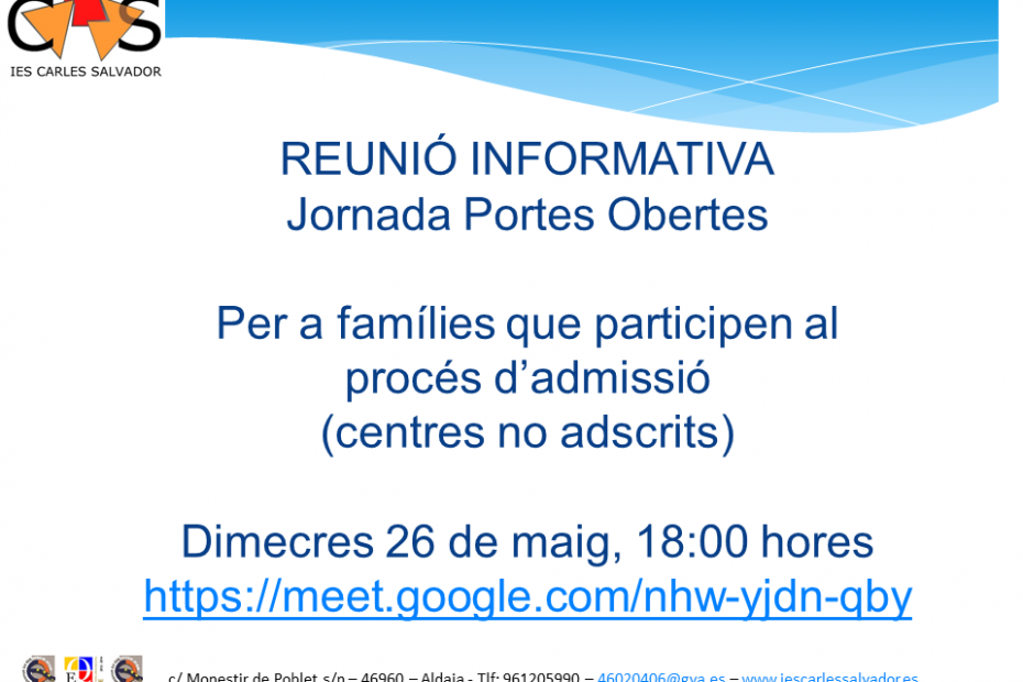 Publicat el calendari de fi de curs per a l’alumnat d’ESO, FP BÀSICA i 1r Batxillerat, també per a 2n de Batxillerat. Ací els podeu descarregar: Calendari ESO, FPB i 1r BATX Calendari 2n BATX També s’ha afegit informació del… Llegiu més »Calendari fi de curs 2020-21