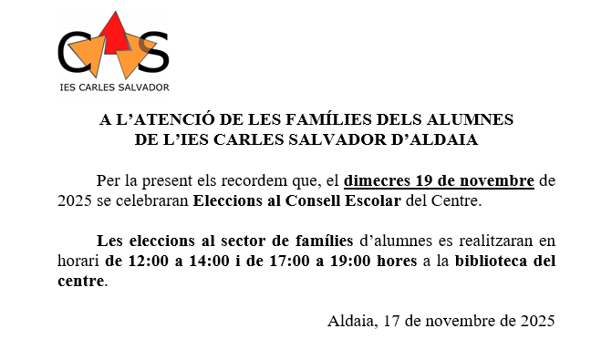 Davant l’ALERTA TARONJA per pluges establida pel Centre de coordinació d’emergències 112 de la Generalitat per al dilluns 13 d’octubre i seguint la “Guia de recomanacions de la Conselleria d’Emergències per als ajuntaments davant fenòmens meteorològics”: QUEDEN SUSPESES LES CLASSES presencials… Llegiu més »Suspensió classes presencials 13 d’octubre, classes on-line