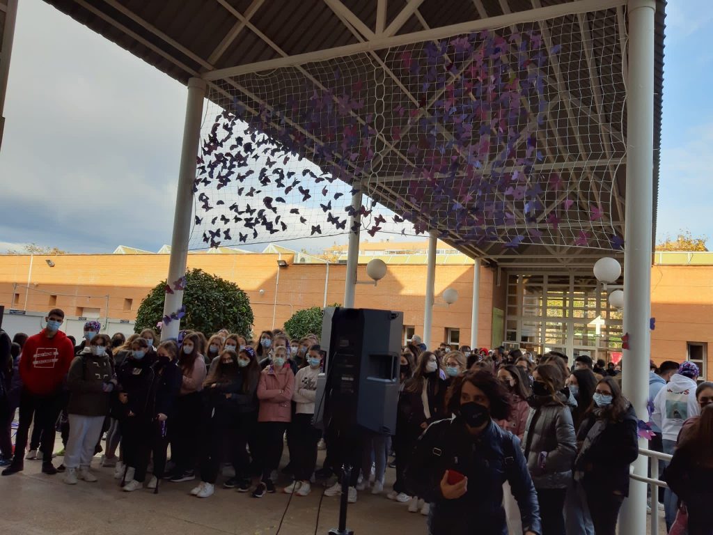 Enguany s’han fet activitats al voltant del projecte “El latido de las mariposas depende de nuestra actitud”. S’han realitzat papallones a les tutories i s’han penjat a una xarxa que romandrà al centre per recordar-nos tots els dies que hem d’estar alerta davant qualsevol indici de violència cap a les dones.