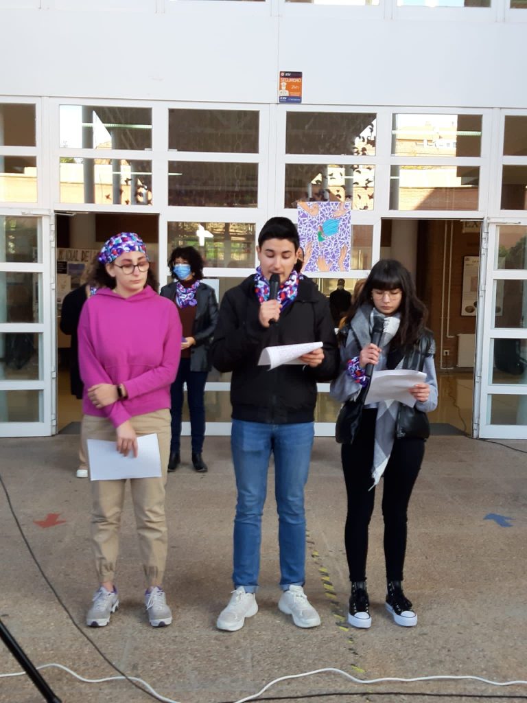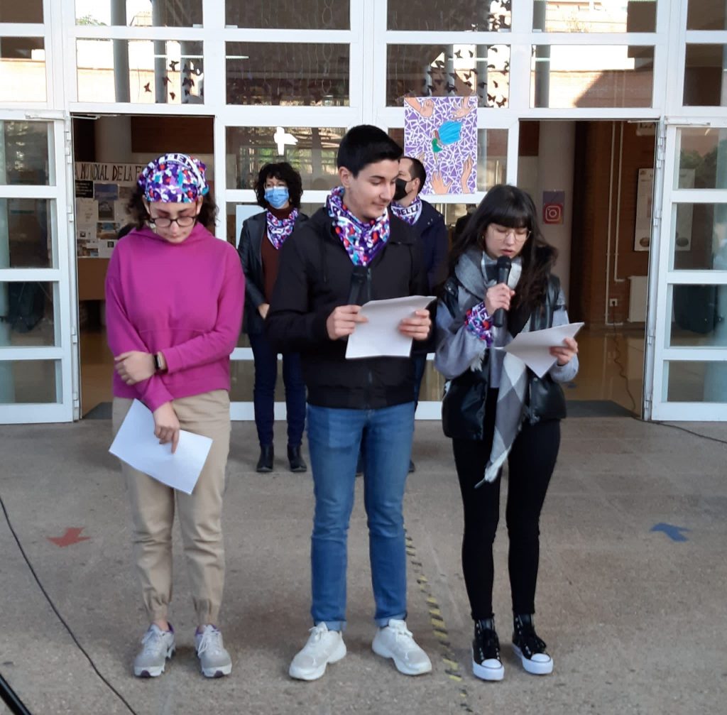 Tres representants de l’alumnat del centre exlicat el projecte dut a terme i van llegir el Poema “el miedo” de Dulce María Loynaz.