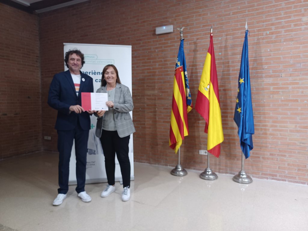 La coordinadora de projectes Erasmus del centre, Paqui Ruiz, va arreplegar aquesta placa que ens anima a continuar amb el nostre pla d’internacionalització del centre.