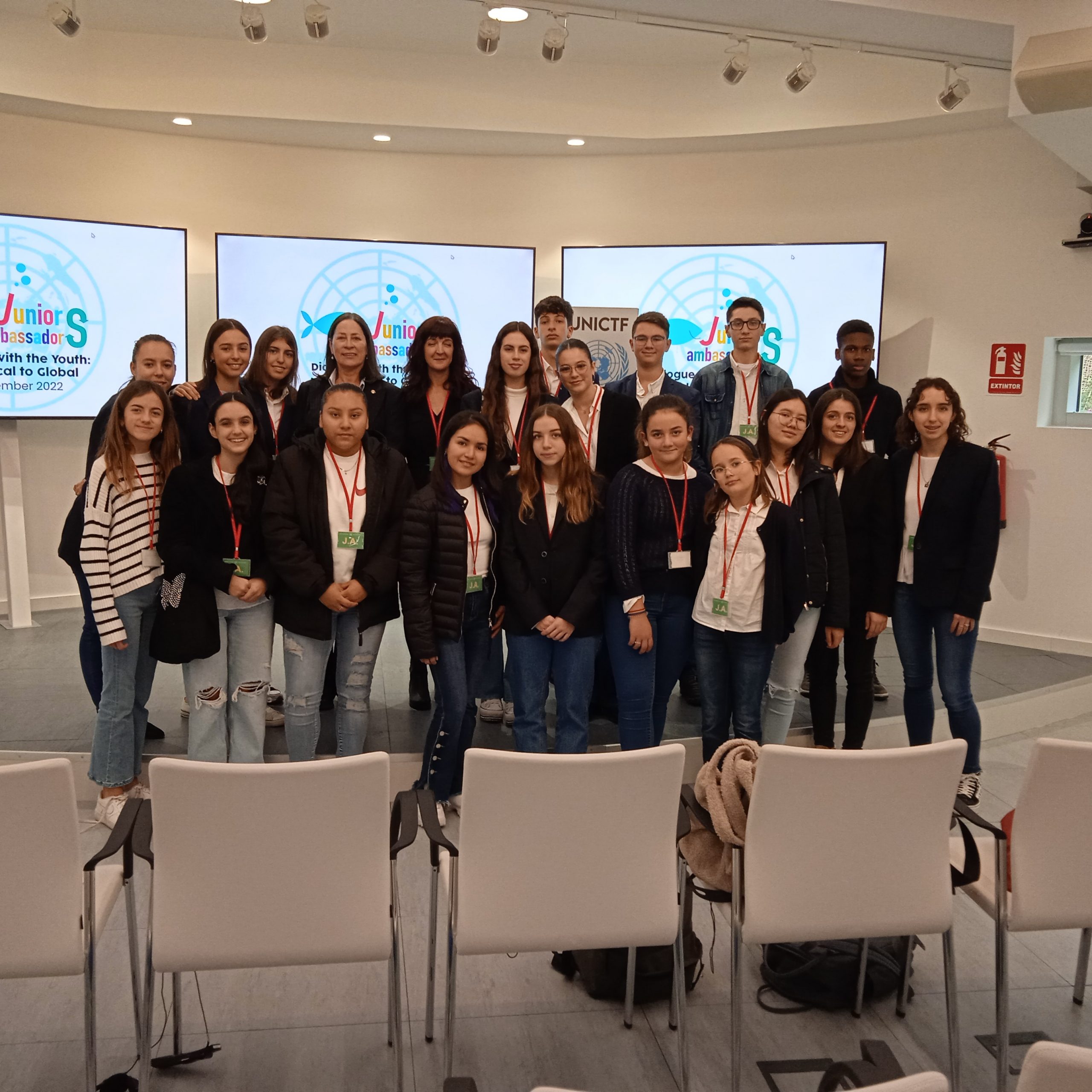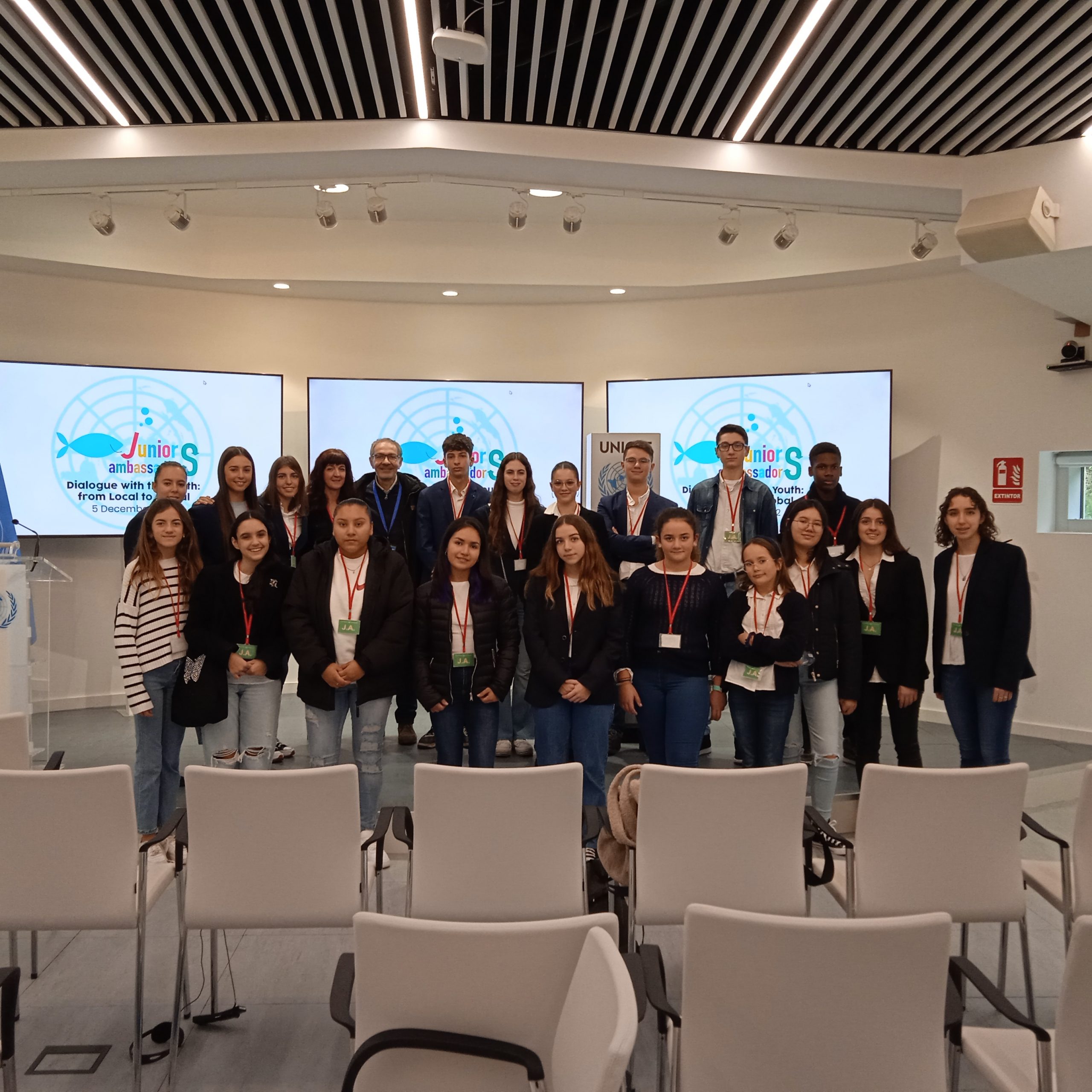 El passat 5 de desembre, les nostres ambaixadores dels ODS Carla Saniuta, Lydia Álvarez i Alma Pardal, al costat d’uns altres embajador@s de huit col·legis i instituts que pertanyen a la Xarxa, van participar en una taula de diàleg amb el Sr. Atul Khare, Secretari General Adjunt d’ONU i la Sra. Giovanna Ceglie, directora del centre de serveis mundials d’ONU.