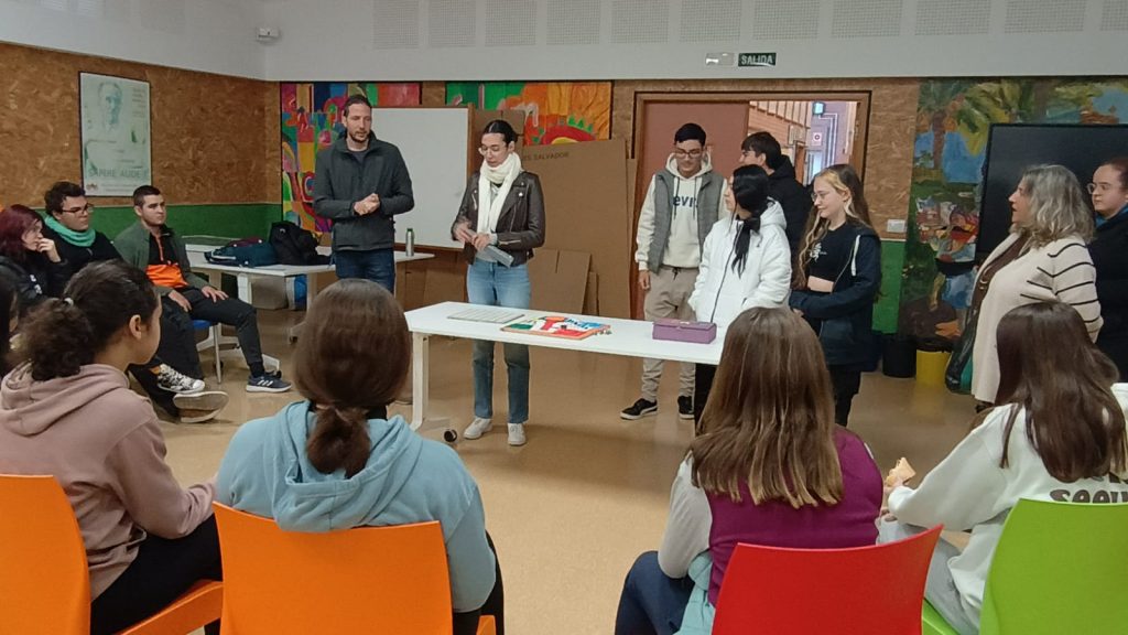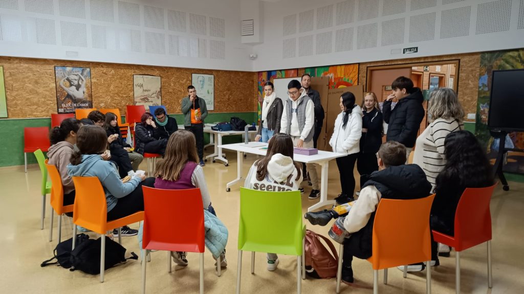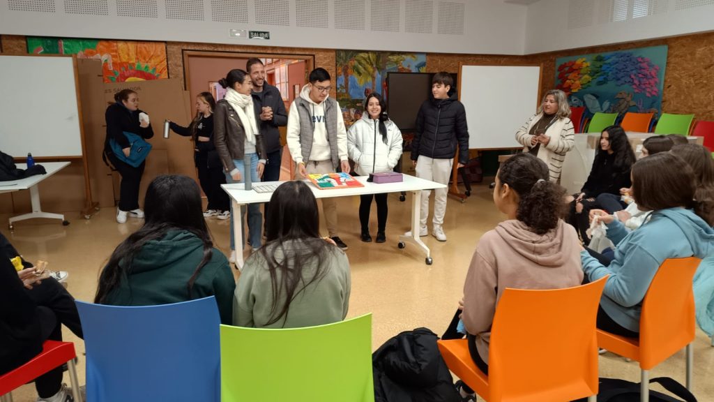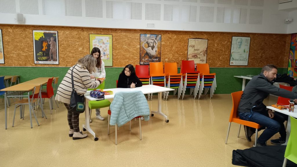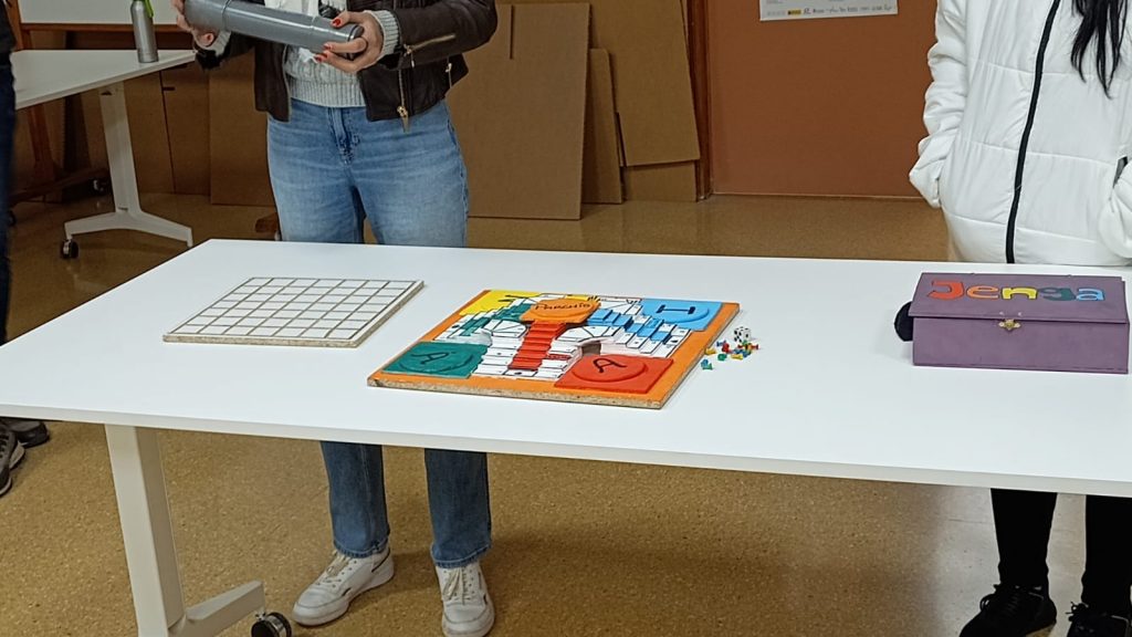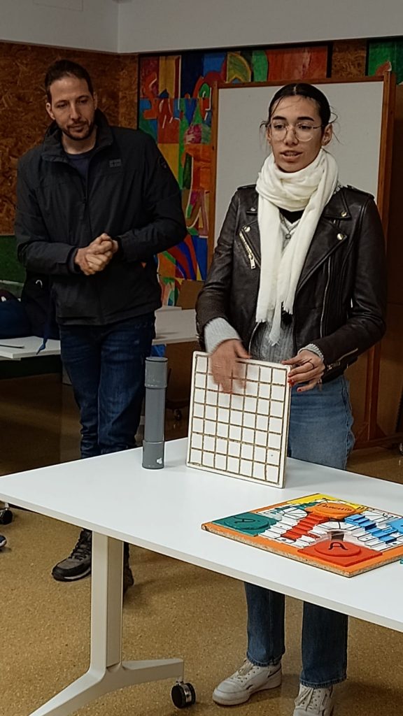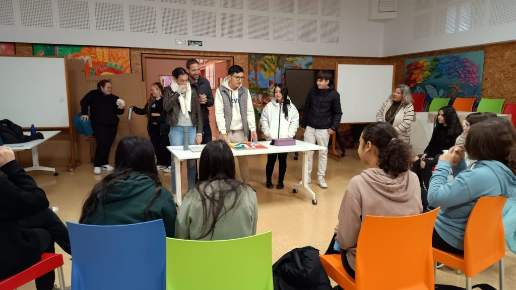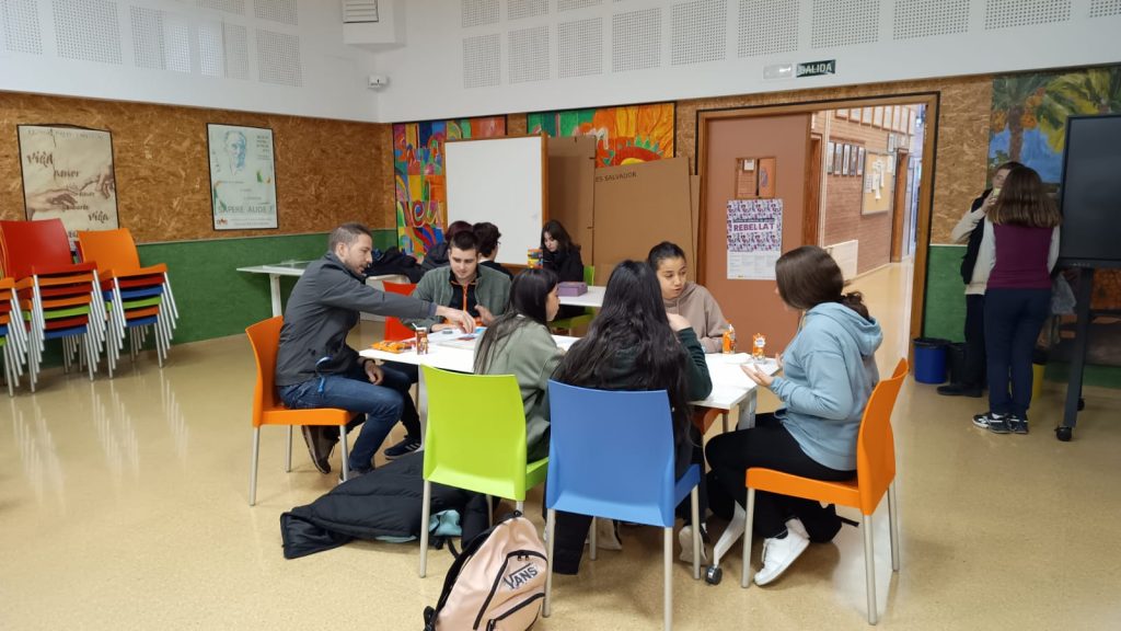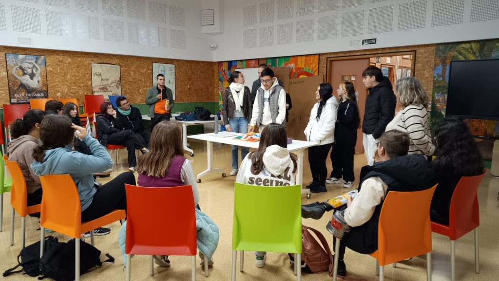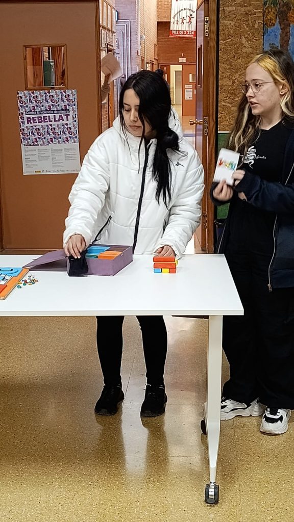 Avuí al matí, alumnat de 4PDC de l’IES Carles Salvador ha fet entrega de diferents jocs que han dissenyat i construït per a l’alumnat que participa del projecte “Ajuda entre Iguals/Pati de jocs”.