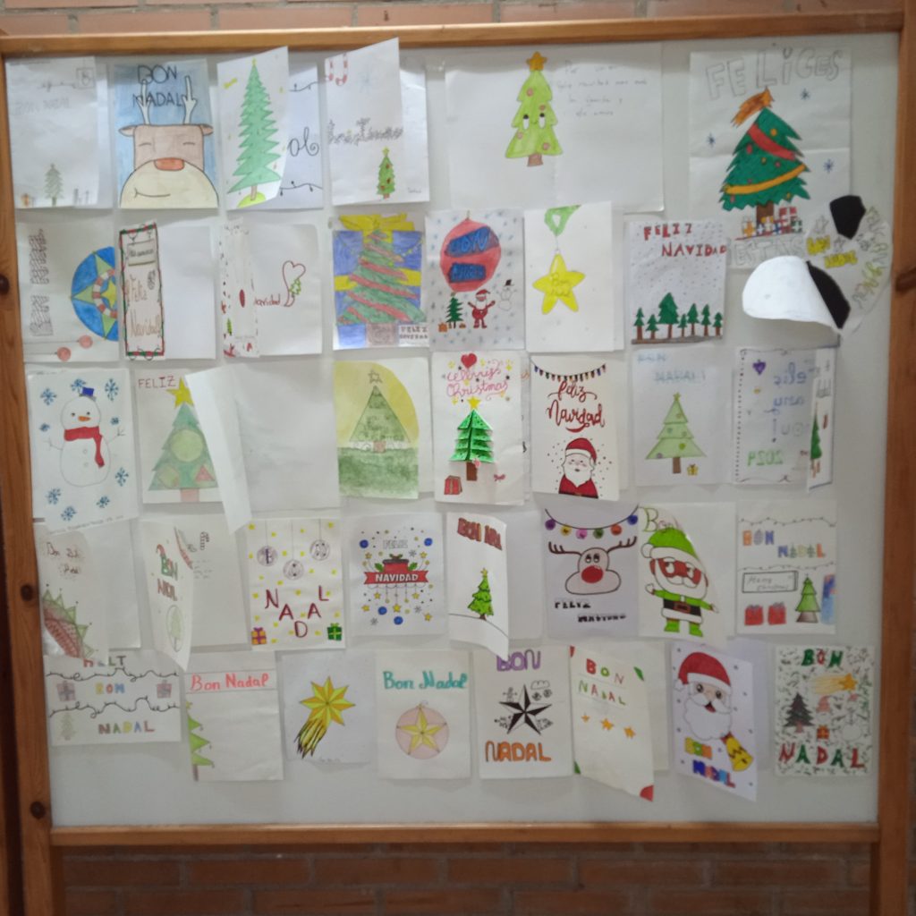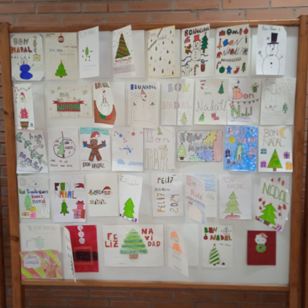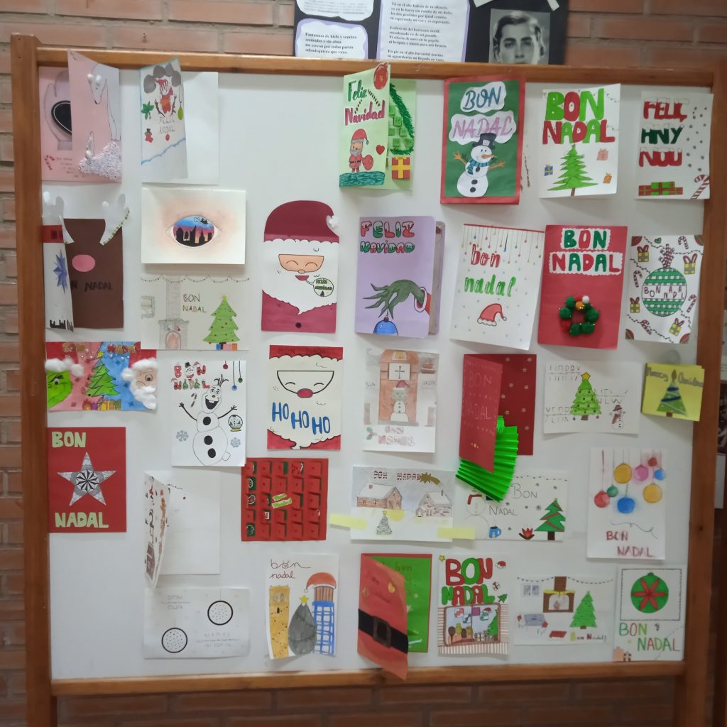 Un any mes s’ha realitzat el concurs de postals de nadal a l’IES Carles Salvador. Els treballs de l’alumnat estan exposats a la planta baixa de l’edifici Aulari.