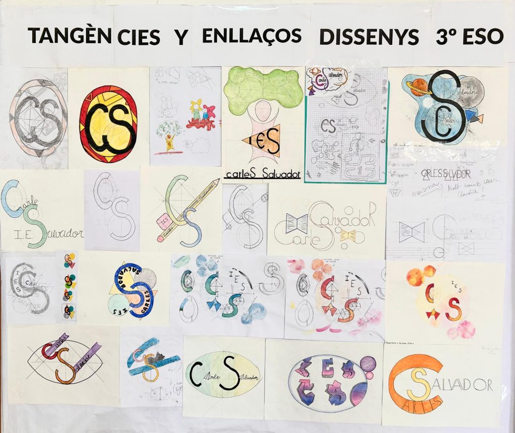 Dissenys de logos d’identitat de centreper iescarlessalvador15 abril 202415 abril 2024 Alumnat de 3r d’ESO de l’àrea de plàstica ha realitzat aquestos treballs amb aplicació de tangències i enllaços senzills.
